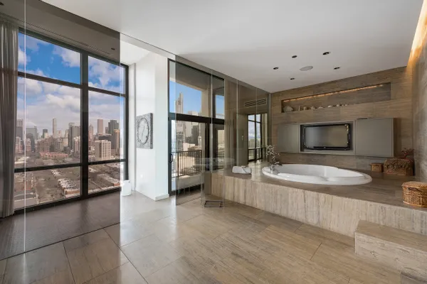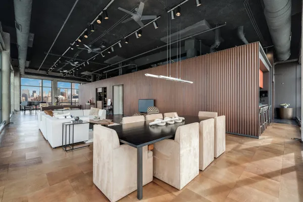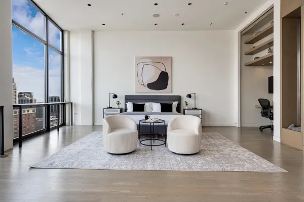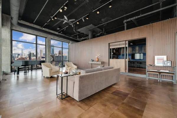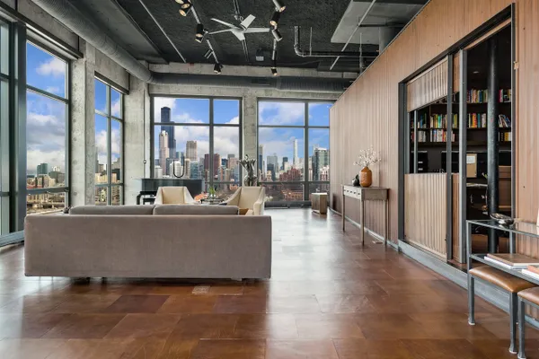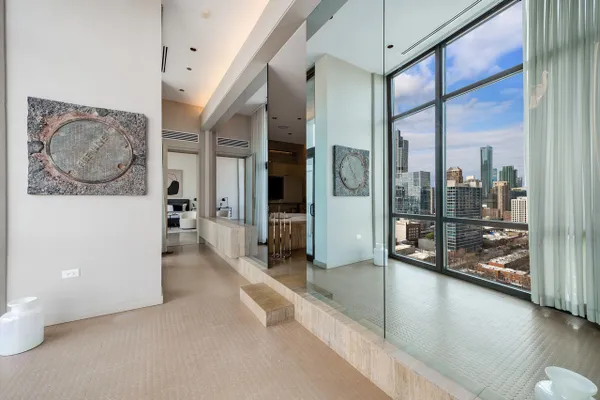 Step into a realm of unparalleled sophistication with this 6,000+ square foot penthouse at 1530 S State Street, where grandeur meets contemporary design. This unique duplex penthouse, designed by STL Architects, boasts 15-foot ceilings and expansive floor-to-ceiling windows that frame the awe-inspiring Chicago skyline. With three different exposures, each view is more breathtaking than the last, offering an unrivaled panorama that changes with the seasons and never gets old. The extraordinary residence is a testament to luxury and attention to detail, featuring one-of-a-kind architectural elements and the highest quality finishes. Custom-cut leather floors in the great room with COR-TEN steel walls running the entire length of the EIGHTY FOOT LONG ROOM (spelled that out to make sure don’t think it’s a typo) create a tactile experience unlike any other, while radiant heating along the windows ensures comfort and clear windows no matter the weather outside. The home includes four generously-sized bedrooms and five exquisite full bathrooms, each crafted with precision and richness. The property has 2 outdoor spaces; a sizable balcony in the primary suite and an oversized private roof deck( The only one in the building!) It offers a secluded escape with stunning views.Privately positioned at the end of the top floor, this home guarantees ULTIMATE privacy and exclusivity. 2 heated garage spots are included in the price. 3 more heated parking spots are available. Located in the vibrant South Loop, the building offers full-service amenities including 24/7 door staff, on-site management, a top-tier fitness center, on-site dry cleaning services and more. This penthouse is not just a residence, but a piece of art waiting to be cherished! Discover luxury living redefined in this South Loop masterpiece- a true must-see for discerning buyers seeking a home that stands a cut above the rest!